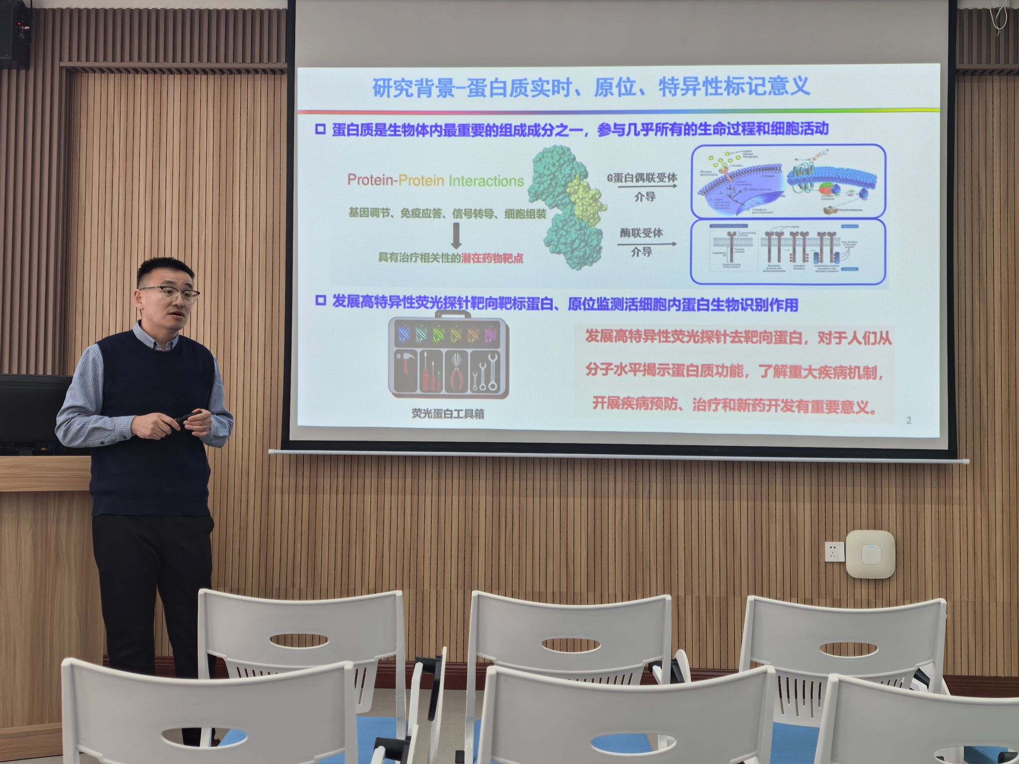 报告结束后,高巍博士与现场教师围绕跨膜行为表征、N端丝氨酸标记技术细节等问题展开深入交流,现场互动热烈。本期论坛充分展现了我系青年教师在化学生物学交叉领域的创新活力,有效促进了跨学科思想碰撞,为后续科研合作营造了良好氛围。
