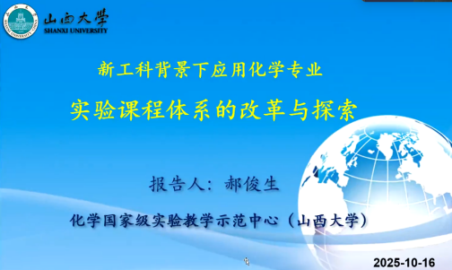 为深化化学专业实验教学改革,精准对接新工科建设要求,10月16日晚,我系联合校级理工协同化学核心课程群虚拟教研室,通过腾讯会议线上平台,成功举办了“新工科背景下应用化学专业实验课程体系的改革与探索”专题讲座。本次讲座特邀山西大学化学国家级实验教学示范中心常务副主任郝俊生教授担任主讲嘉宾,系主任李燕教授主持讲座,我系全体教师参加学习。