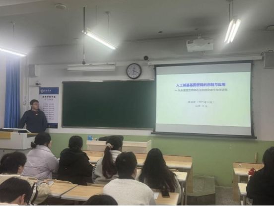 2025年10月27日下午16时,应我系邀请,河南师范大学李凌君博士在2号教学楼127教室,为化学生物学2201班学生带来了一场题为《人工碱基基因密码创制与应用》的专题讲座。本次讲座是我系特色课程《化学生物学专题讲座》的重要组成部分,该课程自2023年开设以来,始终致力于拓宽学生学术视野、深化专业理解,已成功使两届学生受益。李凌君博士的到来讲授,是本课程对接前沿科研、提升育人质量的重要一环。