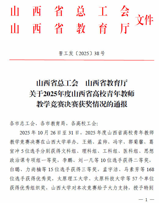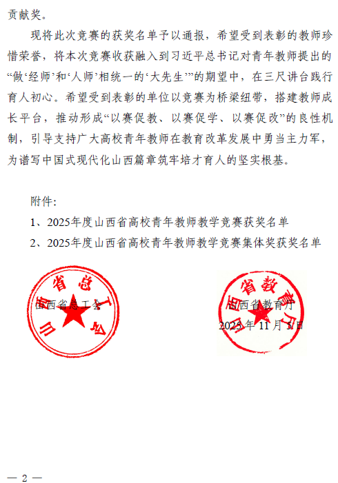化学系教师在2025年山西省高校青年教师教学竞赛中斩获佳绩